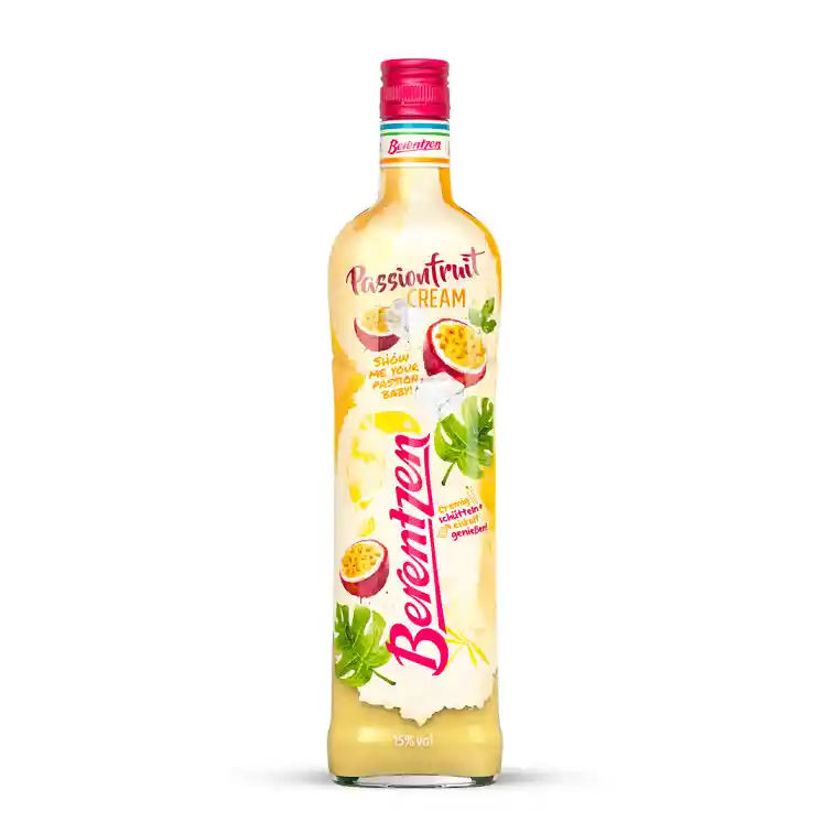 Este licor combina el fino y aromático sabor maracuyá con una delicada crema, es un exquisito licor de crema de consistencia cremosa. El licor de crema de Berentzen de Alemania llega al cliente en la práctica botella que es característica de la marca y debe mantenerse fresca., ideal para tomar solo o con hielo.