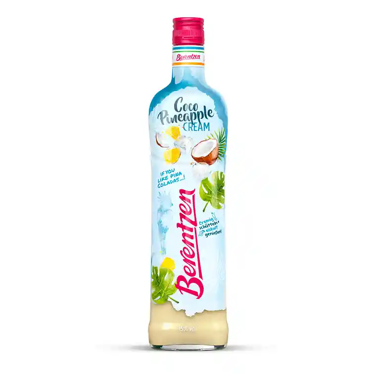 Este licor combina el fino y aromático sabor piña con una delicada crema, es un exquisito licor de crema de consistencia cremosa. El licor de crema de Berentzen de Alemania llega al cliente en la práctica botella que es característica de la marca y debe mantenerse fresca., ideal para tomar solo o con hielo.