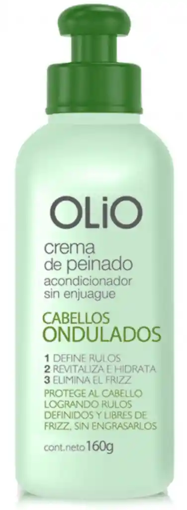 La crema de peinado triple acción cabellos ondulados de Olio acondiciona, revitaliza e hidrata, elimina el frizz y agrega definición y cuerpo a los rulos. Protege al cabello logrando rulos definidos y libres de frizz sin engrazarlos. Producto de uso frecuente. Producto Olio