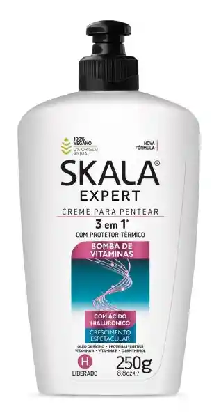 Skala Expert Crema de Peinar 3 en 1 Bomba de Vitaminas – 250 g Crema para peinar 3 en 1 que hidrata, fortalece y controla el frizz, dejando el cabello suave, con brillo y más resistente. Ideal para uso diario en todo tipo de cabello que necesita nutrición y vitalidad.