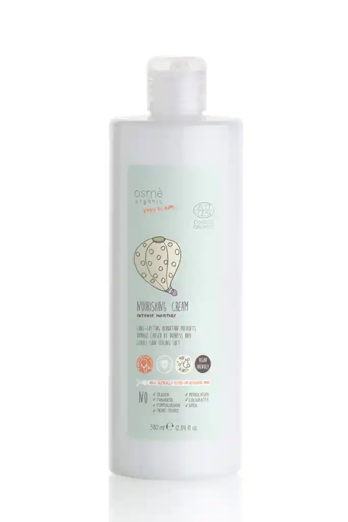 Formato 380 ml. Esta crema nutritiva está especialmente desarrollada para proteger la piel, dejándola naturalmente suave. Contiene una mezcla orgánica de manteca de karité y aceite de almendras prensada en frío para reforzar la elasticidad y flexibilidad de la piel. Con una suave fragancia de almendras y rosas. Apto desde recién nacidos. Certificado orgánico, sin químicos, apto para veganos y clínicamente probado, los ingredientes son 99% naturales.
