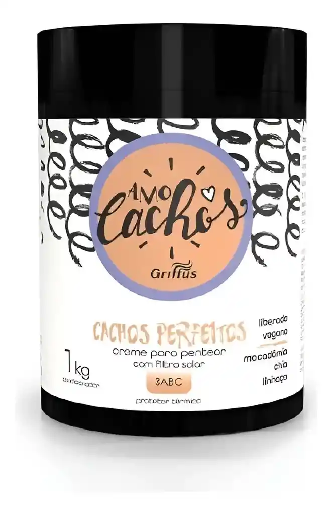 Crema para peinar Amo Cachos Griffus 1 kg. Hidrata, define y controla frizz para rizos 3A–3C. Con macadamia, chía y linaza. Fórmula vegana con filtro solar y protección térmica. Máximo rendimiento para rizos perfectos.