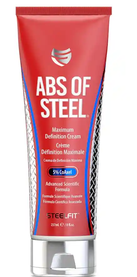 Crema para Máxima Definición con 5% CoAxel Resalta el detalle que has estado buscando con la fórmula científica avanzada activada por calor de Abs of Steel, diseñada para ayudar a dar la apariencia de un abdominal duro.* Características y Beneficios Ingredientes investigados clínicamente. Termogénico activado por calor*. Ayuda a apoyar la reducción de grasa*. Puede ayudar con la pérdida de agua*. Formulado para hombres y mujeres. ¿Qué es? Abs Of Steel®, es una crema con una fórmula científica avanzada activada, que se activa por calor y sirve para dar la apariencia de un core más duroy tonificado. Logra la apariencia de ese sixpack, con abdominales tridimensionales que resaltan. Abs of Steel® es el compañero de entrenamiento perfecto para ayudar a dar la apariencia un abdomen cincelado por el que ha trabajado tan duro.