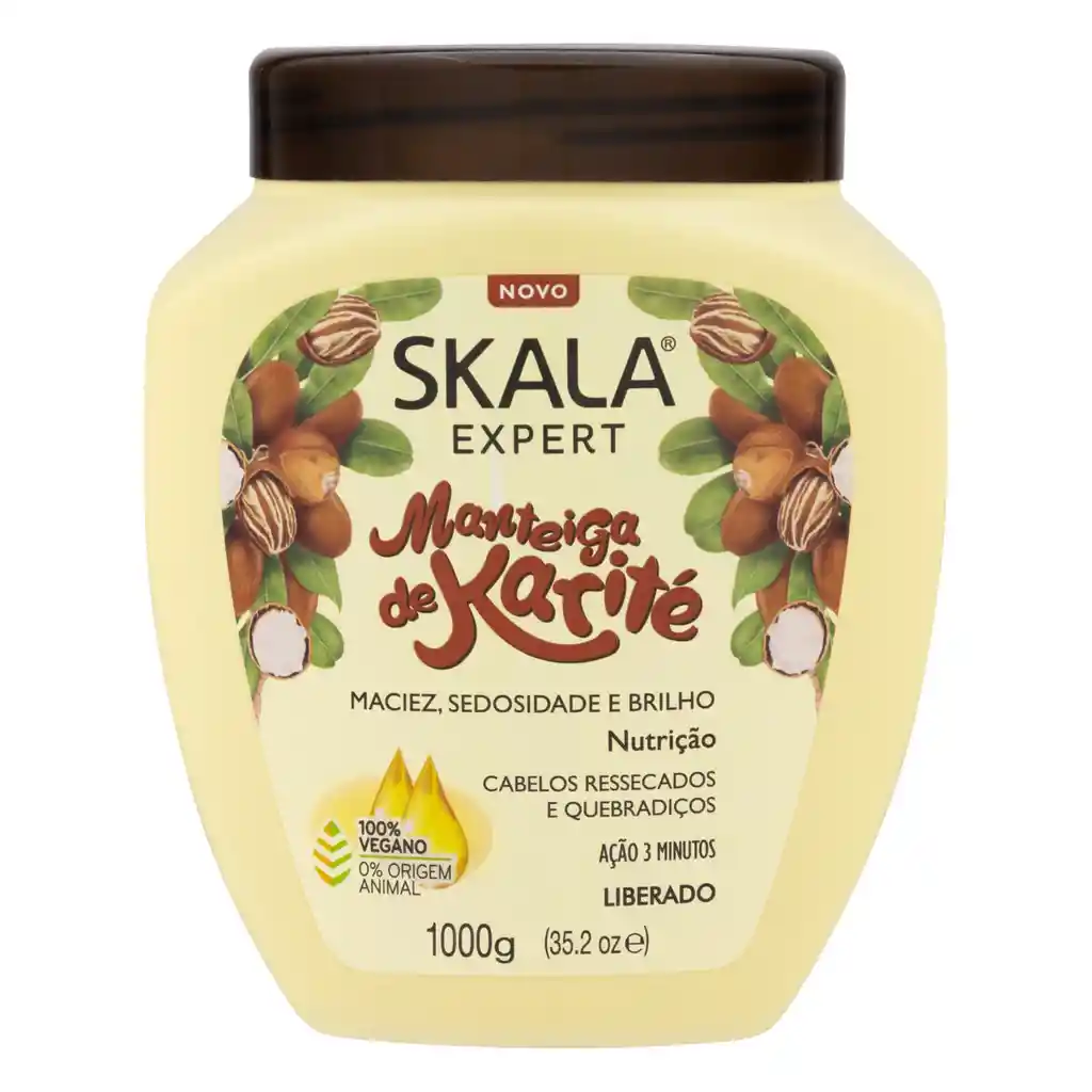Skala Máscara Manteca de Karité hidrata el cabello reseco, débil y dañado por tratamientos químicos. Enriquecida con Vitamina E y D-Pantenol, hace una nutrición poderosa que trata el cabello a través de sus propiedades emolientes, nutriéndolas, restaurándolas. Otorga brillo y suavidad al cabello. ›100% Vegano ›Sin Sulfatos ›Sin Parabenos ›Sin Petrolatos ›Sin Siliconas ›Apto Co-Wash ›No Testeado En Animales
