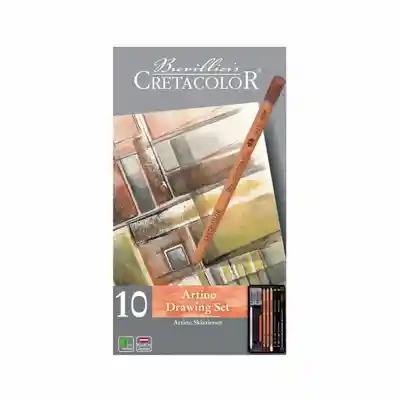 Estuche de Metal Con Funda de Cartón, 10 Unidades Contiene: 1 Lápiz Monolith Grafito + 5 Lápices de Arte (Nero, Carboncillo, Tiza Blanca, Sanguina, Sepia) + 1 Barrita de Sanguina + 1 Barrita de Carboncillo + 1 Difumino Goma Maleable.
