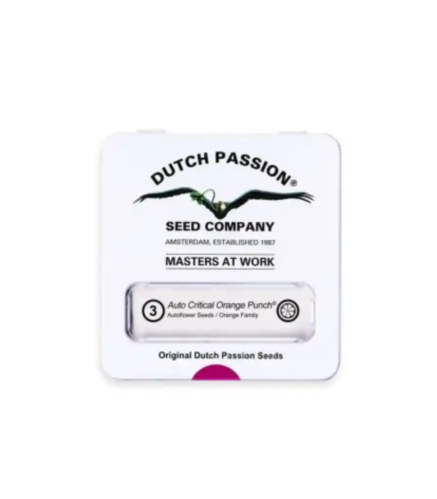 Descubre Auto Critical Orange Punch (X7) de Dutch Passion, la primera autofloreciente que combina la fortaleza y el sabor intenso de la genética Critical con la facilidad y rapidez de una variedad autofloreciente. Esta campeona de la productividad se destaca por su perfil de terpenos cítricos, ofreciendo una sinfonía de sabores agridulces que recuerdan a naranjas frescas y limones jugosos, con un fondo de hachís exótico. Auto Critical Orange Punch es una elección estelar para cualquier cultivador, desde el novato hasta el veterano, gracias a su versatilidad y capacidad de adaptación a diferentes métodos y sistemas de cultivo. Con un ciclo de vida de solo 10 a 11 semanas desde la semilla hasta la cosecha, esta variedad es una obra maestra de la eficiencia en el jardín. Ficha Técnica: Marca: Dutch Passion Variedad: Auto Critical Orange Punch Tipo: Autofloreciente Feminizada Efecto: Relajante y Eufórico Perfil de Sabor: Cítricos, Naranja, Limón, Hachís Terroso Producción: Alta XXL Tiempo desde la germinación hasta la cosecha: 10-11 semanas Altura: Media THC: Alto