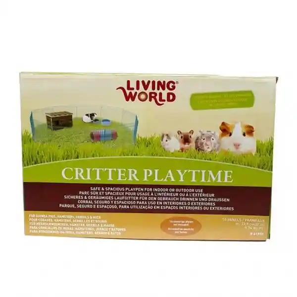 Portátil de 10 Paneles Ensamblados Que Puede Ser Utilizado en Interiores o al Aire Libre Para Crear Una Amplia Zona de Juegos de Casi 1 Metro Cuadrado Para Que tu Mascota Pueda Estirar Sus Patitas Fuera de su Hábitat. La Gran Zona de Juegos También Ofrece un Cambio de Escenario Estimulante y Una Oportunidad Para Que Puedas Jugar e Interactuar Más Estrechamente Con tu Mascota. Desde 1972 Living World se ha Comprometido a Hacer Que la Vida de Las Aves y Las Mascotas Pequeñas Sea Más Cómoda Mediante el Desarrollo de Productos Que Cuiden su Bienestar. La Extensa Línea de Alimentos Helados Golosinas Suplementos Ropa de Cama Productos de Cama Jaulas Juguetes y Accesorios de Living World Está Diseñada Para Atraer Los Instintos Naturales de Las Aves y Las Mascotas Pequeñas. Nuestro Objetivo es Desarrollar Productos Naturales y de Aspecto Natural Que Fomenten el Comportamiento Natural y Hagan Que Las Mascotas se Sientan Instintivamente Cómodas. Nuestra Devoción Por Mejorar la Vida de Las Mascotas También se Refleja en Nuestra Excelente Línea de Alimentos Para Animales Pequeños Incluidos Living World Extrusión Classic y Timothy Hay. Ideal Para: Cobayas. Erizo. Hámster. Ratas. Características: Se Plega Rápidamente Para un Fácil Guardado. Espacio Adecuado Para Cobayas y Otros Animales Que no Salten. Incluye 10 Paneles Metálicos Conectados Entre sí. Dimensiones: 10 Paneles de 23 cm de Alto y 34 cm de Largo Cada Uno. El Espacio Entre Barrotes es de 25 cm.