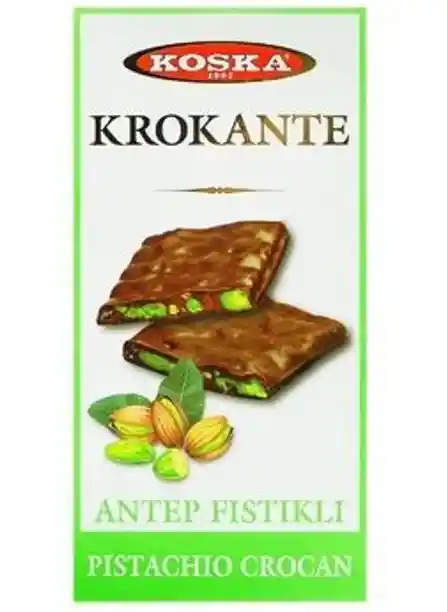 Barras crocante de pistachos bañadas en chocolate.