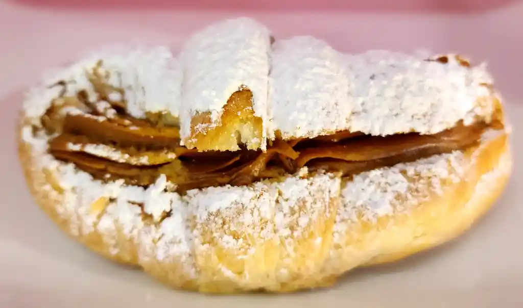 Bollo de hojaldre en forma de media luna relleno con manjar.