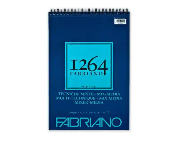 Fabriano 1264 Mix Media es un papel blanco de grano natural con un tratamiento especial de encolaje. Es adecuado para todas las técnicas secas (esbozo con lápiz, dibujo con lápices de colores,etc.) y húmedas (gouache, acuarela, etc.)