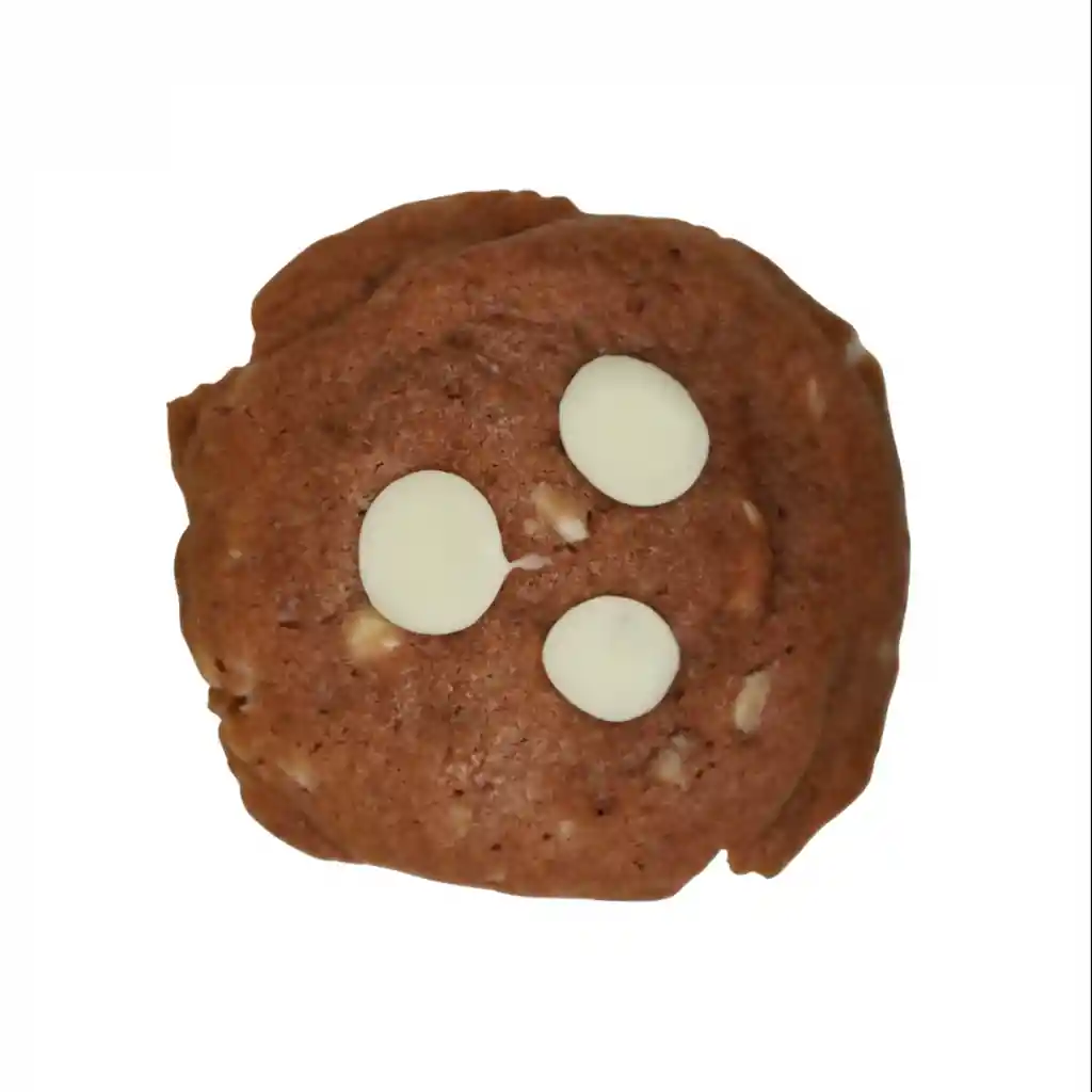 Suave galleta de cacao con un cremoso relleno de vainilla y topping chocolate blanco al estilo New York Cookies, 50 a 55 gms