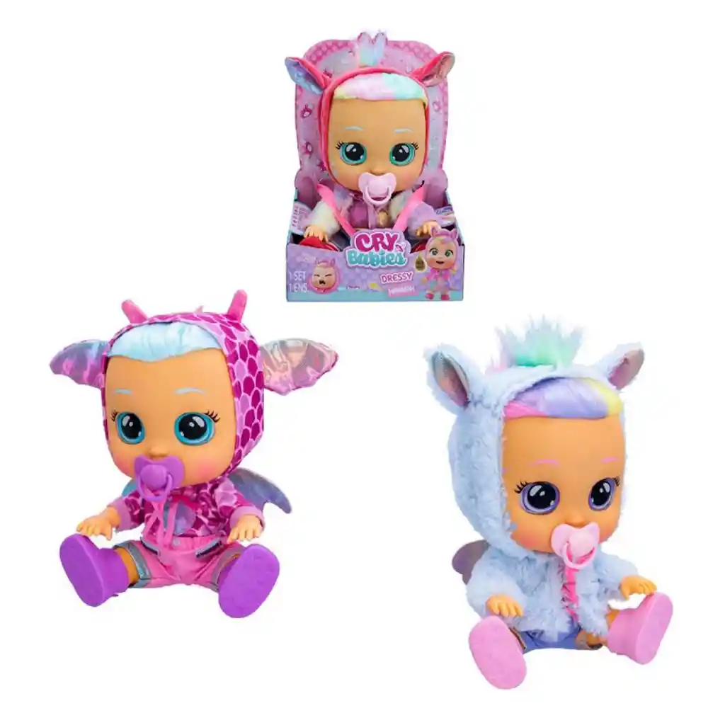 ¡Los Bebés Llorones tienen un nuevo look diurno! Conoce a los nuevos Cry Babies Dressy Fantasy del Mundo de Fantasía. Llevan trajes nuevos y coloridos, tienen cabello real para que el peinado sea más divertido, bonitos ojos de cristal y un diseño liviano para que puedas llevarlos contigo a todas partes. Como todos los Bebés Llorones, lloran lágrimas reales y emiten 10 sonidos realistas de bebé cuando les quitas el chupete. Vuelva a ponerle el chupete o acuéstelo para que deje de llorar. Los bebés llorones son la muñeca interactiva perfecta para un juego divertido e imaginativo.