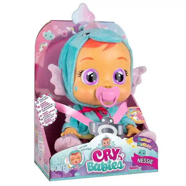 Conoce al Bebé Llorón Nessie Lleva un Adorable Pijamita de Animal Marino y Vive en el Mundo Fantasía. Es Monísima Pero ¡Llora Lágrimas de Verdad Cuando le Quitas el Chupete! ¡Pónselo Otra Vez o no Dejará de Llorar y Cada Vez lo Hará Más Fuerte! ¡Y También la Puedes Tumbar Para Calmarla! Se Recomienda de 18 Meses en Adelante.