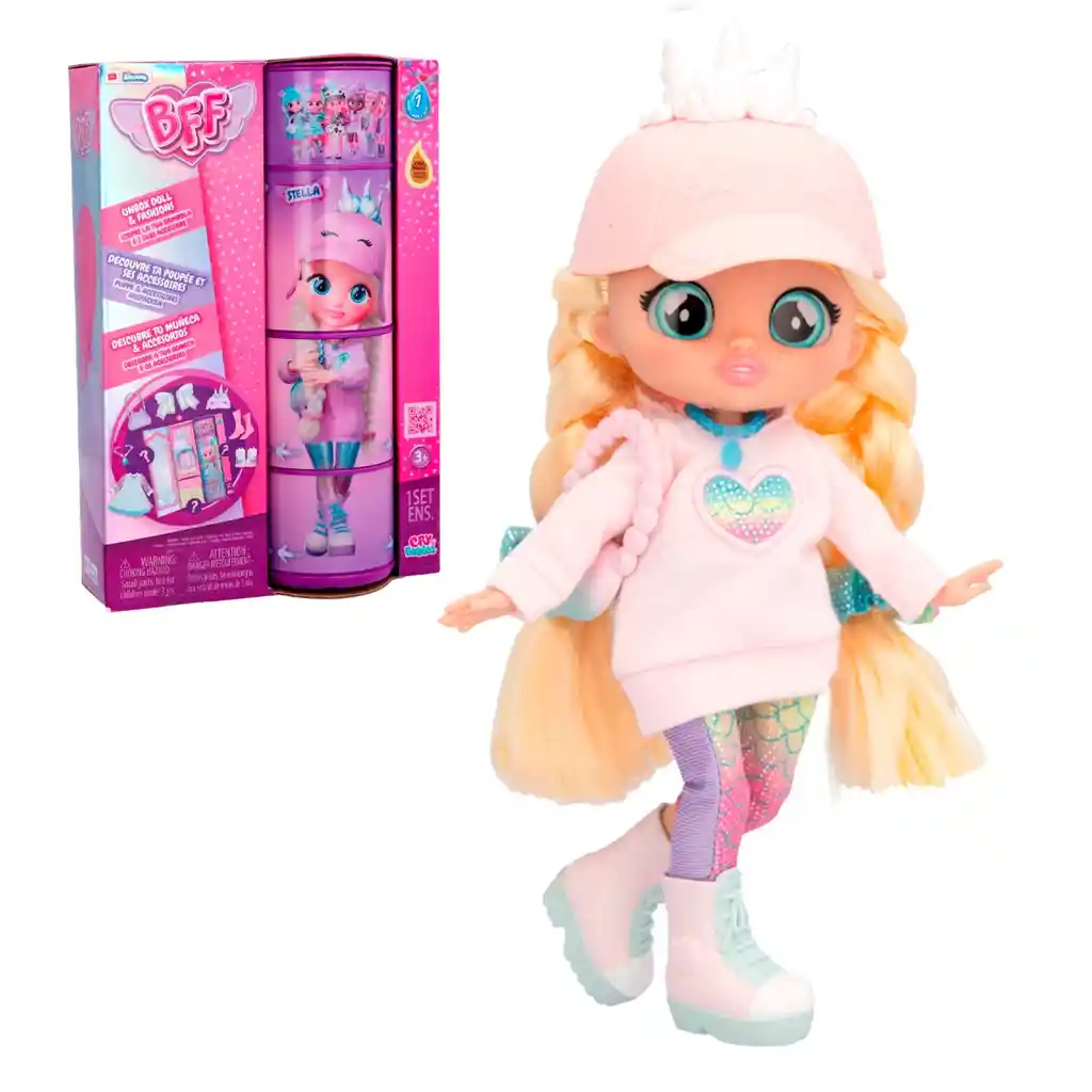 Tus personajes favoritos de Cry Babies han crecido, aumentando aún más la diversión. Esta Muñeca Stella Fashion BFF de Cry Babies, tiene un elegante cabello rubio en dos trenzas, ojos de cristal y hasta 6 puntos de articulación que ofrecen un sinfín de posibilidades de poses y juegos. Ella luce un look muy fashion y viene en un embalaje único, así que desempaca y descubre su armario con hasta 9 accesorios sorpresas. Este juguete está pensado para incentivar el desarrollo de tus pequeños, ayudándoles a desarrollar sus habilidades cognitivas, sensoriales, su expresión social, emocional, la relación Mano/Ojo además de la relación causa y efecto, promoviendo en ellos la imaginación, creatividad y el juego de rol.