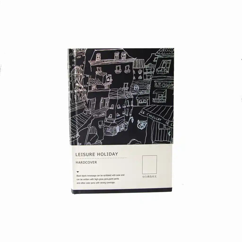 Cuaderno De Hojas Negras Diseño Paisajes Casas Modelo D