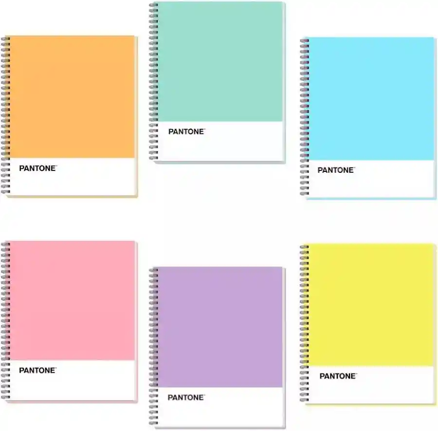 Cuaderno universitario 7mm Pantone, viene en distintos colores con tonalidad pastel, tapa dura y anillado doble espiral 100 hojas cuadriculadas de 7mm. de 50 gr, medidas 20,2 x 25 cm.