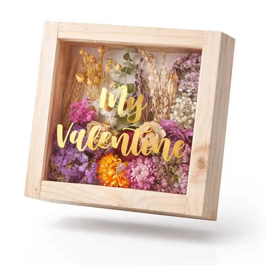 CUADRITOS COLORIDOS DE FLORES SECAS 15X15 con frase My Valentine