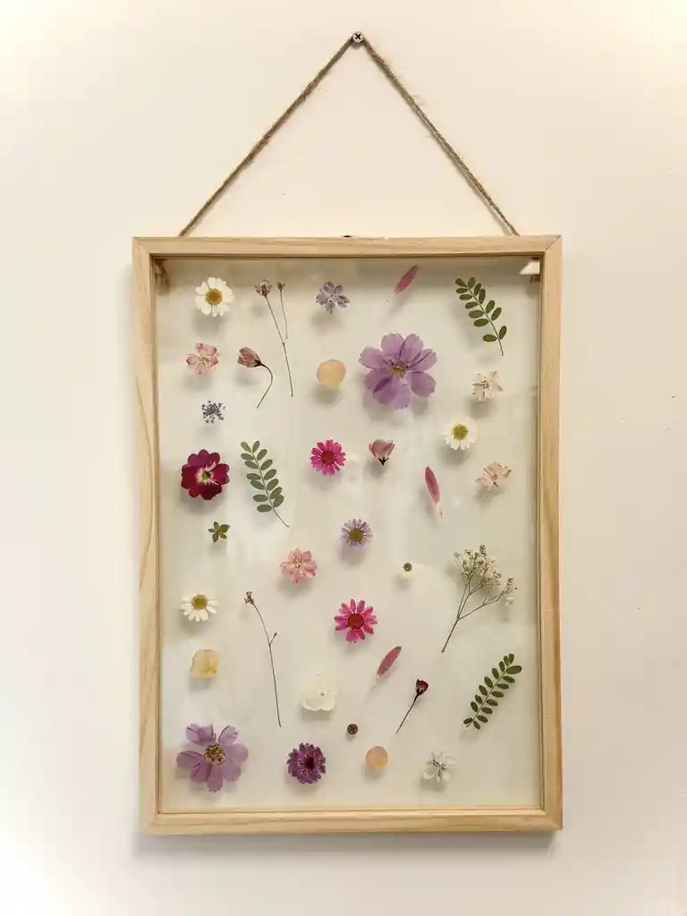 Cuadro de flores prensadas naturales entre vidrios en tonos rosados, lilas, burdeos, blancos y verdes. Incluye marco de madera. Ideal para decorar tu casa. Medidas: Altura 42 cms / Ancho 30 cms Por tratarse de un producto natural las tonalidades, tamaños y formas de las flores pueden variar. Nunca habrán dos cuadros exactamente iguales. Nuestros productos pueden durar varios años si se cuidan de la manera correcta; no exponer al sol directo, cambios de temperaturas muy abruptos, exposición a espacios húmedos, contacto directo con el agua, inadecuada manipulación, entre otros.