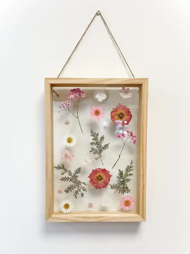Cuadro de flores prensadas naturales entre vidrios en tonos rosados, verdes y blancos. Incluye marco de madera. Ideal para decorar tu casa. Medidas: Altura 29.7 cms / Ancho 21 cms Por tratarse de un producto natural las tonalidades, tamaños y formas de las flores pueden variar. Nunca habrán dos cuadros exactamente iguales. Nuestros productos pueden durar varios años si se cuidan de la manera correcta no exponer al sol directo, cambios de temperaturas muy abruptos, exposición a espacios húmedos, contacto directo con el agua, inadecuada manipulación, entre otros.