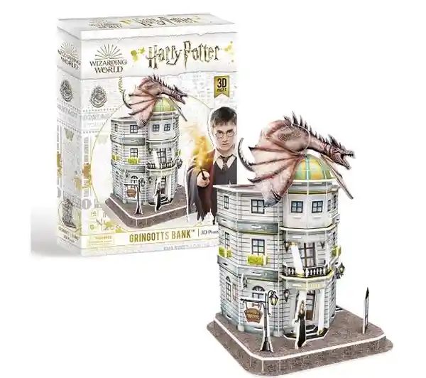 Revive la Magia de tu Saga Favorita Construye Gringotts el Único Banco de Magos Manejado Por Duendes Podrás Recrear la Escena Del Dragón Vista en la Última Entrega de la Saga y Además Completar tu Colección Agregando Diferentes Tiendas Del Callejón Diagón y Así Tener tu Mundo Mágico de Harry Potter. Las Piezas Están Hechas de Cartón Pluma no Requieren Pegamento u Otro Material Adicional Además Cada Pieza Está Numerada y se Incluye Manual de Instrucciones. Pensando en Usuarios Con Una Edad Desde 8+ 74 Piezas Una Vez Armado Alto 21.1 cm Largo 14.5 cm Ancho 15.1 cm.