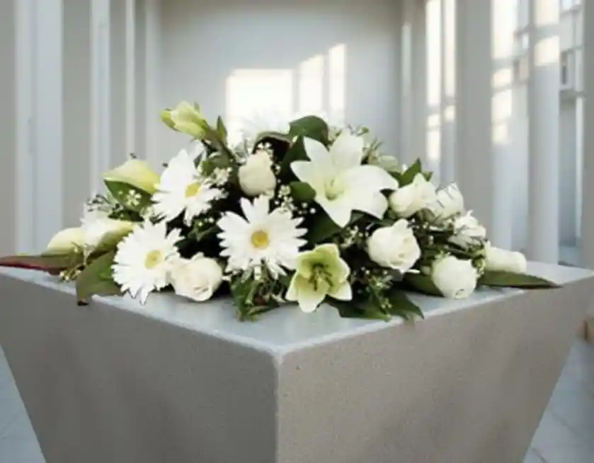 HERMOSO CUBRE URNAS 8 LILIUMS, 12 ROSAS Y 7 GERBERAS PARA DESPEDIR A LAS PERSONAS QUE ESTIMAMOS