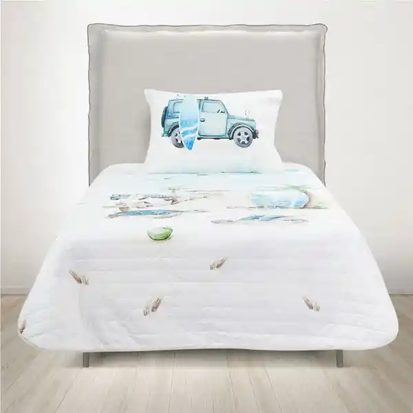 Estampado Con Tortuga y Palmeras Este Cubrecama Ilustrado Por la Creadora Peruana Paola Castañeda y Realizado Con la Técnica de Acuarela. También Cuenta Con un Envase Para Guardar Que Tiene Los Mismos Print y Que Puede Utilizarse Para Guardar Otros Objetos. Un Cubrecama Que Además es Reversible e Ideal Para Estimular la Imaginación de Los Niños y Niñas y el Amor Por Sus Espacios. Medidas: Cubrecama: 165 x 270 cm / Funda Almohada: 50 x 70 cm