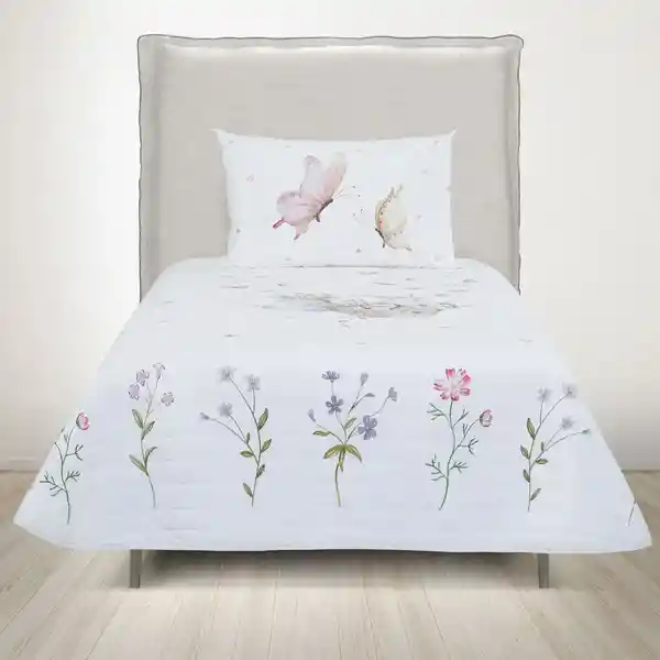 Este Cubrecama Con Estampados de Mariposas Fue Ilustrado Por la Creadora Chilena María Jesús Delfau y Realizada Con la Técnica de Acuarela. También Cuenta Con un Envase Para Guardar Que Tiene Los Mismos Print y Que Puede Utilizarse Para Guardar Otros Objetos. Un Cubrecama Que Además es Reversible e Ideal Para Estimular la Imaginación de Los Niños y Niñas y el Amor Por Sus Espacios. Medidas: Cubrecama: 165 x 270 cm / Funda de Almohada: 50 x 70 cm