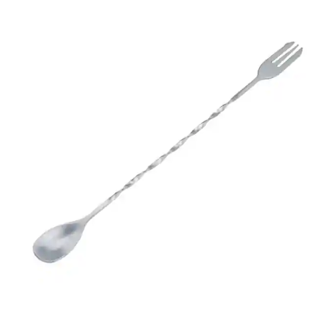 Color plata. Se utiliza principalmente para mezclar o revolver los ingredientes de forma sutil e igualmente para enfriar las copas, componer diferentes capas en un mismo trago, pulverizar el azúcar, macerar cítricos, enfriar el coctel, entre otras. Tiene un tridente o tenedor pequelo que permite decorar tu coctel con frutos pequelos como la aceituna o cereza.