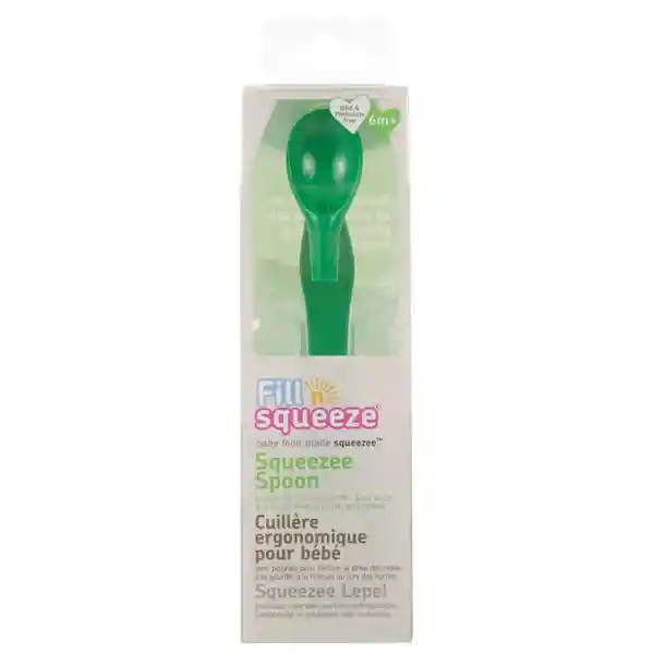 Diseño ergonómico que hace más fácil la alimentación de tu bebé en la primera etapa. La nueva cuchara permite alimentar fácilmente directamente de las bolsas Fill n Squeeze. Para instalar sólo debes presionar la cuchara a la bolsa y también funciona con la mayoría de las marcas de este formato. Además se puede utilizar como una cuchara convencional. Libre de BPA, ftalatos y plomo. Apto para lavavajillas. Fabricada 100% en Reino Unido y cumple con la norma EN14372. Cuchara para insertar a las bolsas Fill n Squeeze y compatible con otros productos envasados en ese formato, facilitando la alimentación de los bebés en su primera etapa. • Diseño ergonómico que hace más fácil la alimentación de tu bebé en la primera etapa. • Permite alimentar fácilmente directamente de las bolsas Fill n Squeeze en cualquier lugar, sin necesidad de un plato. • Se puede utilizar además con cualquier marca de bolsitas de este formato. • Se puede utilizar como una cuchara convencional. * Mango amplio para que el bebé pueda utilizarla solo. * Permite apoyar en una superficie sin tocarla la boquilla. * Fácil de lavar. Apto para lavavajillas.