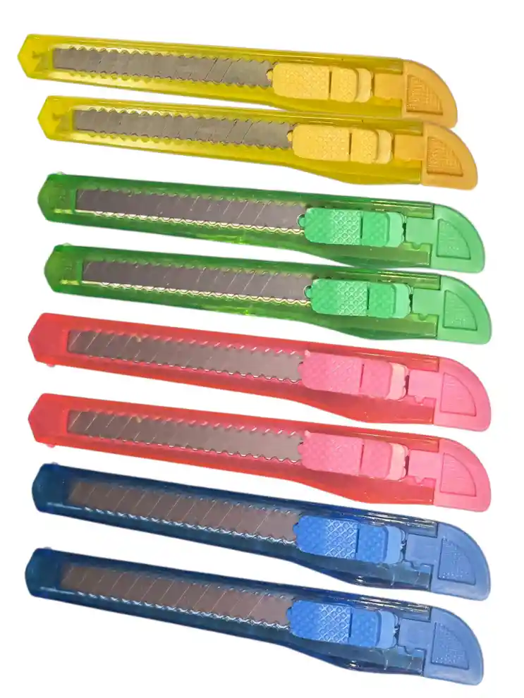 Cuchillo Cartonero Pequeño 12,7 cms aprox, vienen en diferentes colores (se enviara al azar de acuerdo al stock de la tienda)