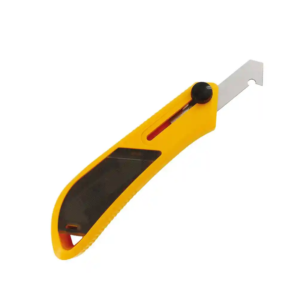 Cuchillo Grande Corta Acrilico con Seguro Manual PC-L. Cuchillo Industrial determinado para cortar diferentes tipos de acrilicos y algunos plasticos. Hecho de plastico ABS. Sistema de fijacion manual con tornillo y contiene un compartimento con 2 repuestos. Apto para diestros y zurdos. Repuesto: PB-800 Producto recomendado para mayores de 18 Años