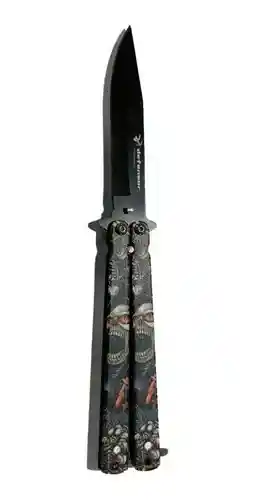 Características principales Marca Ekol Modelo Mariposa Tipo de filo de la hoja Liso Forma de la hoja Drop Material del mango metalica Otras características Estilo: Mariposa Usos recomendados: Supervivencia Material de la hoja: Acero inoxidable Largo total: 22.5 cm Largo de la hoja: 10 cm Apertura de la hoja: Manual Cuchilla mariposa navaja diseño Calavera, cerrada mide 14 cm Abierta mide 23 cm de largo, Hoja de 10 cm , con seguro para cerrar. es sin filo para practica