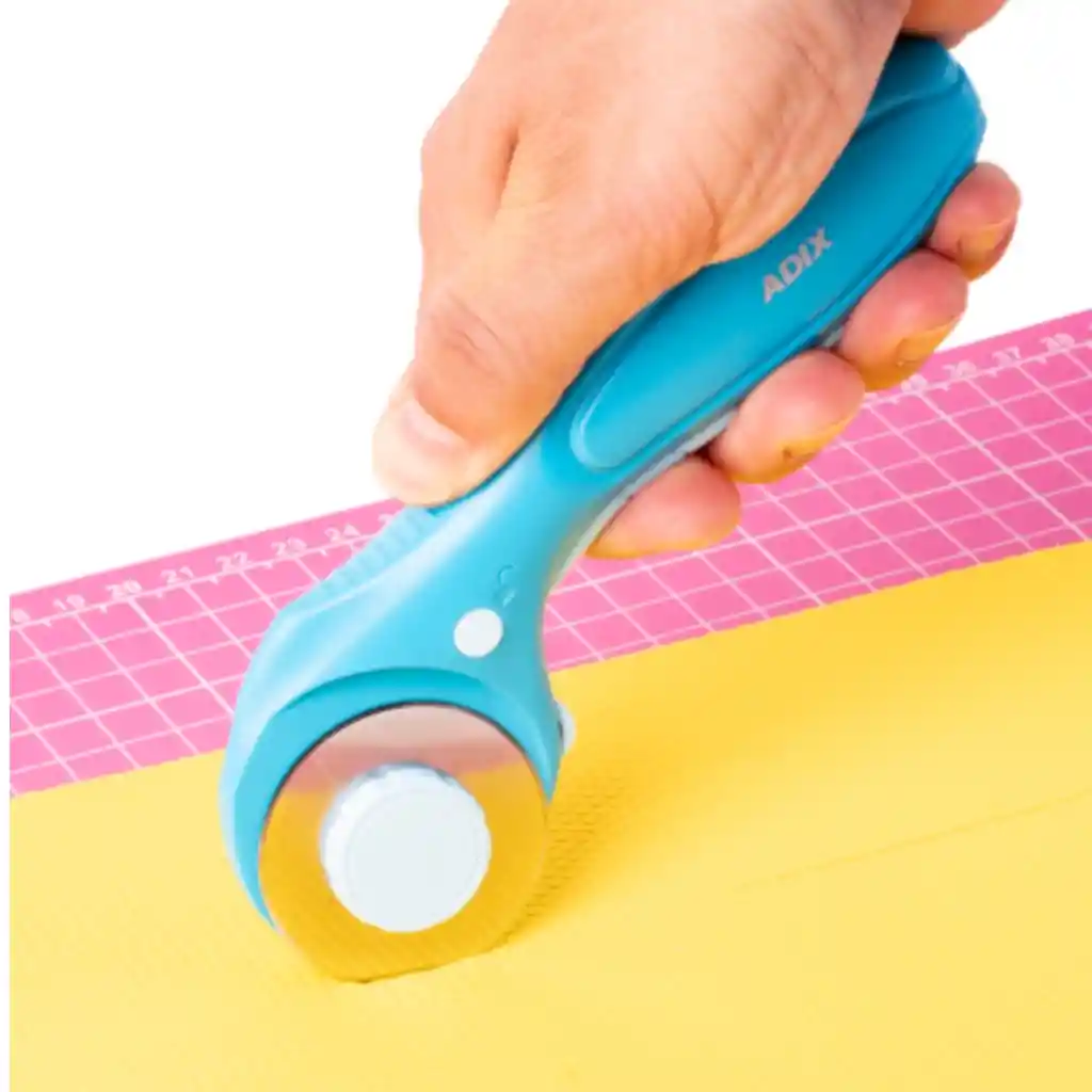 Cuchillo rotativo Ideal para cortar telas, papel y otros materiales ✂️ 📍 Características: 📏 Tamaño del cuchillo: 45 mm. 🖐️ Mango antideslizante 🔢 Edad recomendada: +18 🏷️ Marca: CREATIVE