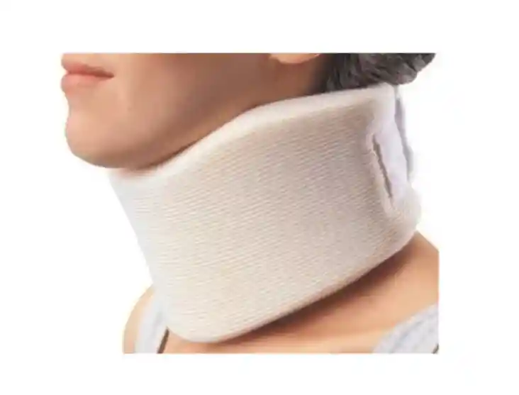 Cuello ortopédico fabricado en poliuretano de alta densidad que disminuye la movilidad del cuello y reduce la presión sobre las vértebras, ajustable con velcro color gris