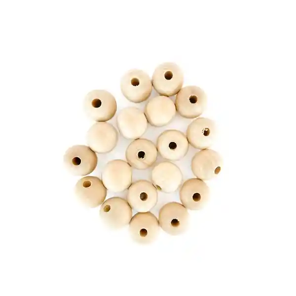 Cuentas de madera, color natural en forma circular de 20mm.Útiles para crear decoraciones en macramé y muchos proyectos.Cada paquete contiende 20 unidades.