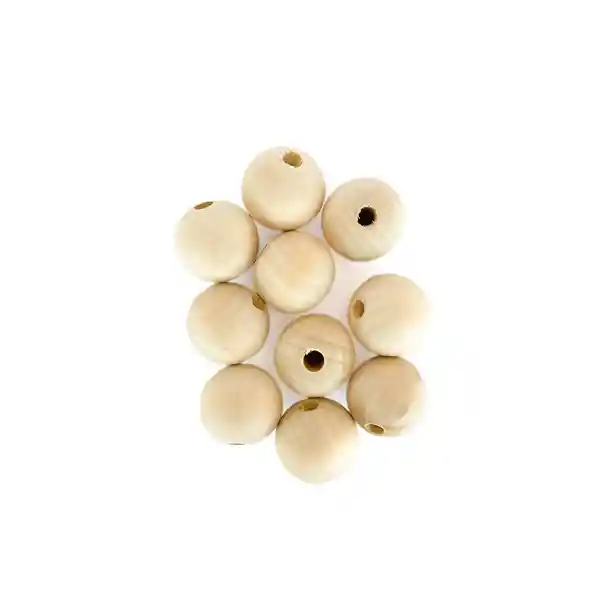 Cuentas de madera, color natural en forma circular de 25mm.Útiles para crear decoraciones en macramé y muchos proyectos.Cada paquete contiende 10 unidades.