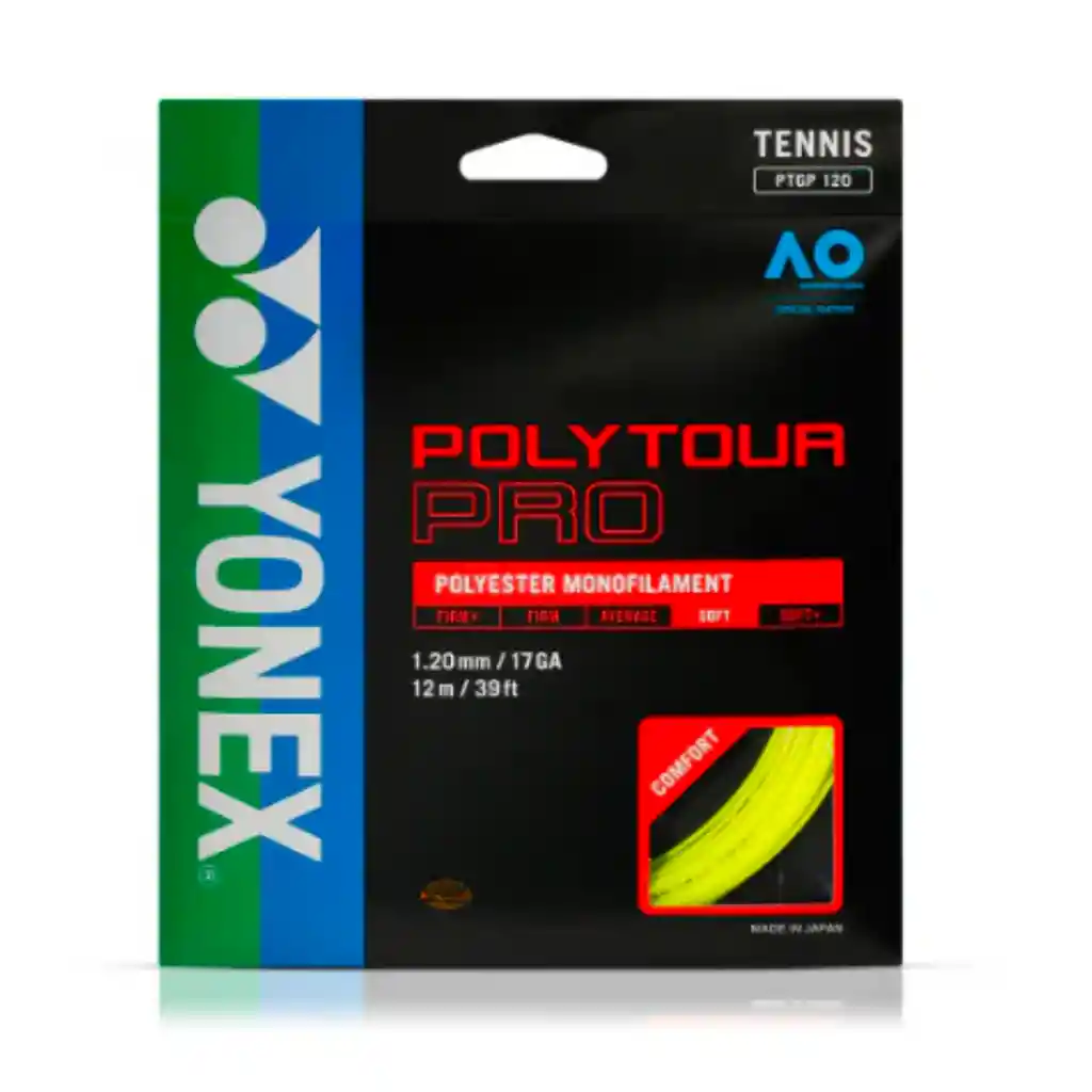 La cuerda Yonex Poly Tour Pro 120 es una cuerda de poliéster más suave. Es muy, muy amigable para los efectos. Los jugadores avanzados amarán el control y la sensación que obtienen desde todas las áreas de la cancha. Una cuerda sólida y duradera que es una gran opción para jugadores agresivos y de gran impacto.