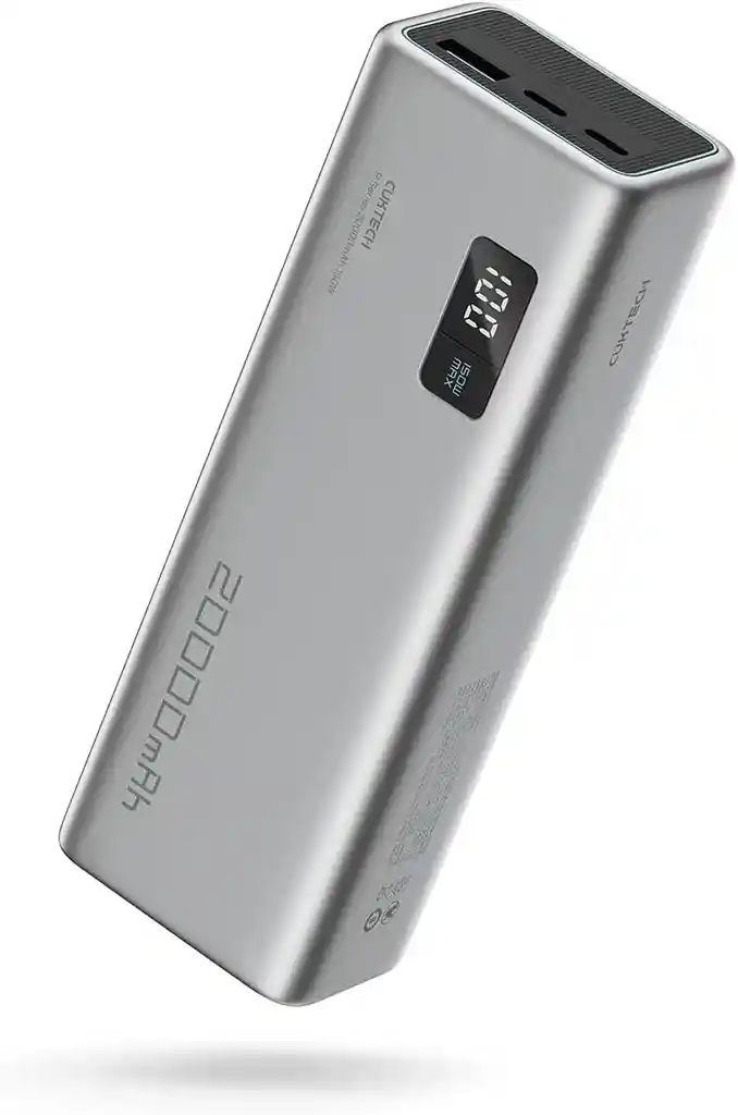 "Gran capacidad de 20.000 mAh La batería externa está equipada con una batería de gran capacidad de 20.000 mAh, que proporciona energía suficiente para cargar tu iPhone 14 hasta 3,3 veces o cargar el MacBook Air una vez. Es compatible con las necesidades especiales de energía para uso al aire libre, por lo que es un práctico accesorio para despreocuparse del nivel de batería. Salida con Varios Puertos y un Máximo de 150 W Incluye 2 puertos USB-C y 1 puerto USB-A, que ofrecen una increíble potencia máxima de salida de hasta 150 W. Ya sea para cargar teléfonos, tablets u otros dispositivos, los versátiles puertos facilitan la carga rápida y satisfacen las necesidades energéticas de forma eficiente en cualquier lugar. Carga Rápida La batería externa CUKTECH 15 es compatible con múltiples protocolos de carga rápida, incluidos el PD3.0, el QC3.0 y el PPS y puede cargar varios dispositivos. Admite una carga rápida máxima de 100 W para portátiles, que permite al MacBook Air alcanzar una carga del 55 % en solo 30 minutos. Diseño y Resistencia utiliza celdas de batería auto-grade de 21700 y una placa térmica metálica extra grande, lo cual garantiza una disipación eficaz del calor. Está equipada con cuatro sensores de temperatura integrados y controla las fluctuaciones de temperatura en tiempo real, lo que aumenta aún más su durabilidad. Su potente capacidad de carga y descarga proporciona unos tiempos de carga más rápidos y un uso prolongado. Especificaciones técnicas: Tipo de conector: USB Tipo C, USB Tipo A Capacidad de la batería: 20000 Miliamperios hora (mAh) Función especial: Carga rápida Tensión: 5 Voltios Composición de celdas de batería: Litio Ion Usos recomendados para el producto: Telefóno, computador Fuente de alimentación: Eléctrico con cable Peso del producto: 450 Gramos Dimensiones: 16 x 3,9 x 5,7 cm"
