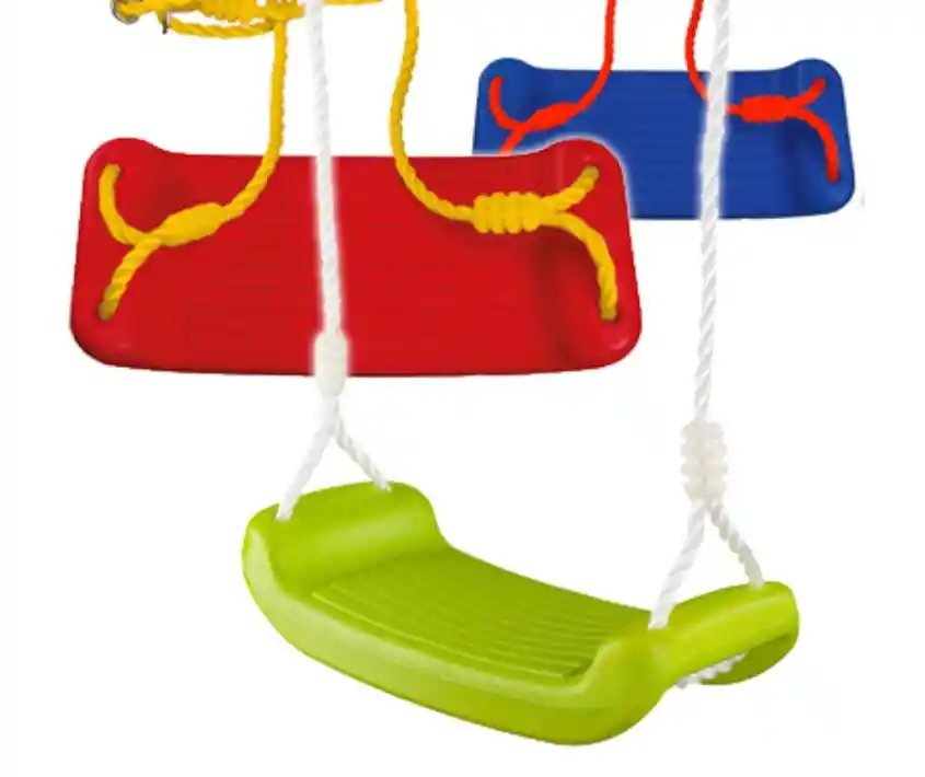 Hermoso columpio plástico de material suave y resistente. En 3 colores surtidos, rojo verde y azul. Precio por unidad.