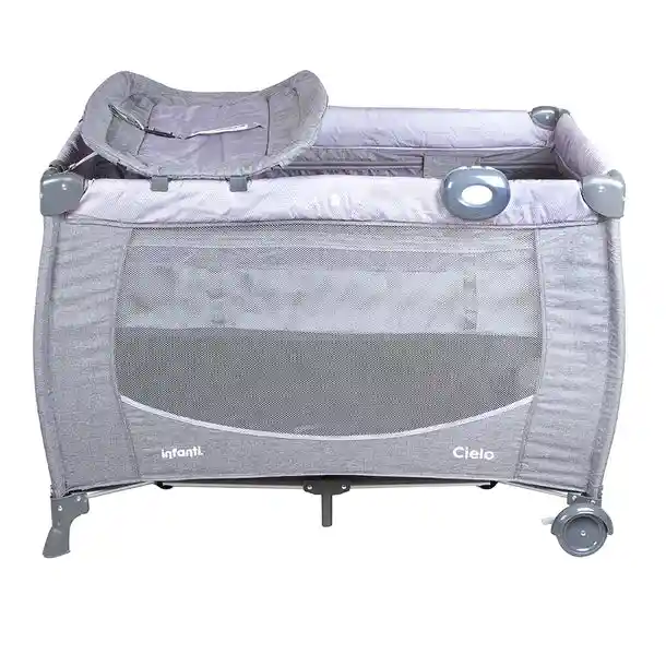 Cuna Corral Cielo Infanti La Cuna Playard Cielo de Infanti ofrece un diseño versátil que combina cuna y corral en un solo producto, pensado para garantizar la diversión y seguridad de tu pequeño. El transporte del cuna cielo es sencillo gracias a la bolsa de transporte incluida, que permite guardarlo y viajar sin complicaciones. Características: Cuna portátil para utilizarse en el hogar o cuando se viaja. Tiene música, luz nocturna y vibrador: Incluye centro de música con melodías relajantes, una luz nocturna y además posee vibración integrada que le permite calmar a su pequeño y conciliar el sueño. Incluye cómodo cambiador desmontable. El nivel superior tiene protectores laterales y una colchoneta acojinada para el confort del bebé. Ruedas para facilitar el desplazamiento. Practico bolsillo lateral. Incluye colchoneta delgada. No incluye colchón. Peso usuario recomendado: 0 a 15 kg