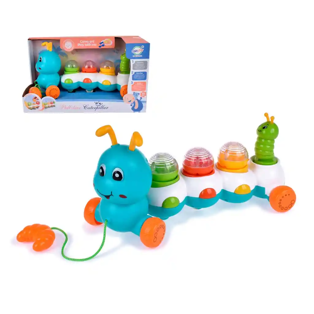 ¡Haz que las primeras etapas de tu bebé estén llenas de entretención con este Cuncuna de Arrastre con Melodías, Luces y Figuras de Encaje! Su función principal es mejorar la capacidad de pensamiento creativo de los niños y la capacidad de operación a través del juego. Encajar las piezas coloridas en su respectivo lugar, ayudará a los pequeños a identificar las imágenes a través de una variedad de colores y formas, además les promueve el gateo y a dar sus primeros pasos ya que pueden halarlo por la correa y este anda gracias a sus ruedas de acción libre que le permite deslizarse sobre cualquier superficie. Este cuenta con el diseño de una oruga con cara amigable, hecho con plástico altamente resistente y libre de BPA. ¡Perfecto para que los más pequeños de la casa se diviertan, jueguen y se desarrollen de forma correcta!