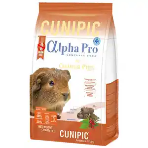Cunipic Alpha Pro Cobaya es un Nuevo Pienso Para Cobayas Basado en el Sistema de Alimentación All In One, lo Que Significa Que Cada Croqueta Contiene Todos Los Nutrientes, Vitaminas, Minerales y Fibra Necesarios Para Que tu Mascota Esté Sana y Feliz, Evitando Las Carencias Alimenticias Por Selección de Alimentos. Cunipic Alpha Pro Cobaya es un Pienso Equilibrado Con un Aporte Extra de Vitamina C Para Que tu Cobaya Esté Siempre Sana. Cada Gránulo de Comida Contiene Una Mezcla Homogénea de Todos Los Nutrientes Que Necesita tu Cobaya Consiguiendo Así Que Coma de Todo y no Deje Alimentos Importantes Sin Comer Pudiendo Ser Perjudicial Para su Salud. Una Única Croqueta Contiene Todos Los Nutrientes, Evitando la Selección. Sin Cereales Para Que Mantenga un Peso Saludable y Sin Azúcares Añadidos Previniendo la Obesidad. Todas Las Etapas de Vida.