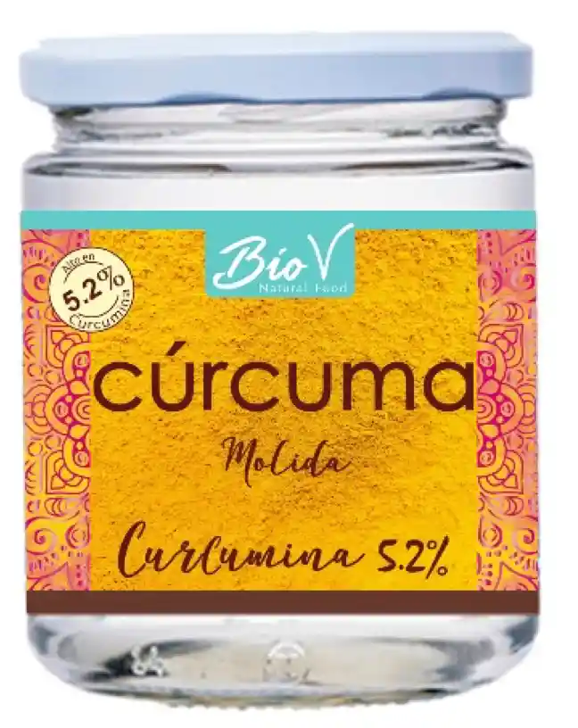 Cúrcuma, 200gr con curcumina al 5.2 compuesto al que se le atribullen los beneficios de salud. Contiene fibra, proteínas, niacina, vitaminas C, E y K, sodio, potasio, calcio, cobre, hierro, magnesio, zinc…, con propiedades antioxidantes y antiinflamatorias.