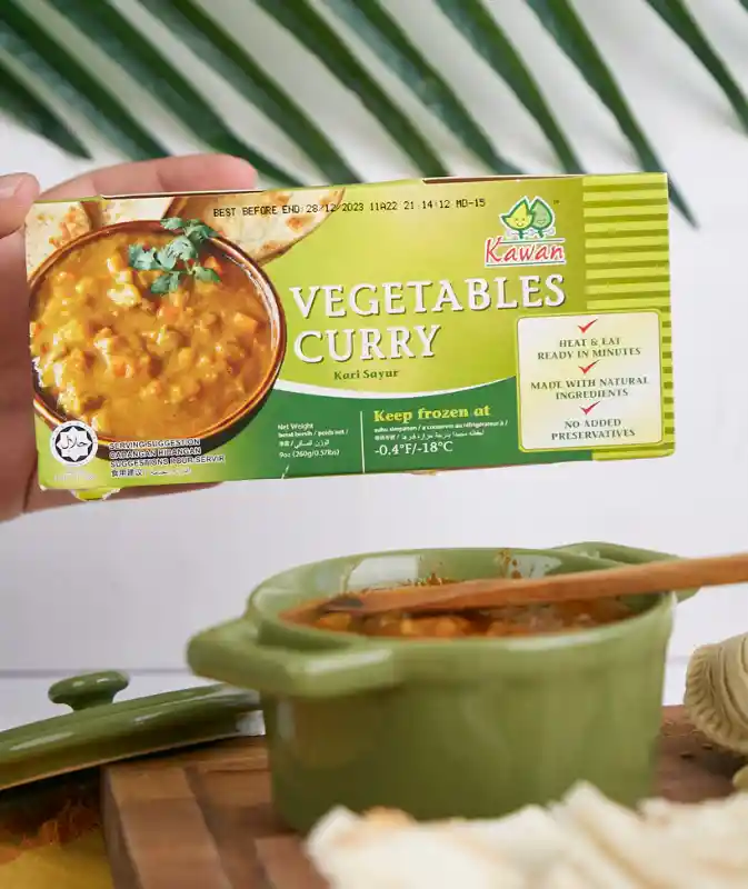 Guiso de verduras especiado con curry. Puede comerse de plato principal o para untar en un picoteo. Paquete: Contiene 2 unidades.Caducidad: 24 meses El producto debe transportarse y almacenarse en condiciones de congelación a -18 °C. Se puede calentar en una olla o en el microondas, no ncesita descongelarse. Para calentar en el microondas, retire del freezer, ,haga agujeros en la tapa plastica con un tenedor y caliente en el microondas a alta potencia durante 2 minutos.Retire con cuidado la película de sellado hasta la mitad y revuelva bien el contenido. Vuelva a sellar la parte pelada con la misma película y caliente en el microondas a alta potencia durante otros 30-50 segundos. Sirva tibio