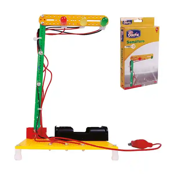 Es un set para armar un semáforo de tres luces, permite al niño desarrollar su ingenio y creatividad a través de la construcción de un circuito que transmite la energía necesaria para encender las ampolletas del semáforo, requiere de pilas AA que no están incluidas. packing: Caja