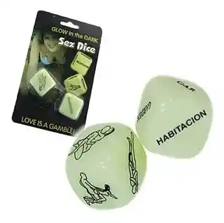 Dados para juegos en pareja. Un dado indica el lugar y la otra la posición sexual. Brillan en la oscuridad Tamaño grande (2.7 cm)
