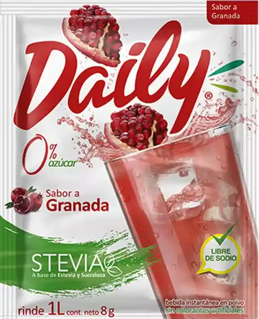 Rico jugo en polvo sin azúcar, Sin colorantes artificial y endulzado con Stevia, refresca tus momentos con Daily. packing: Caja
