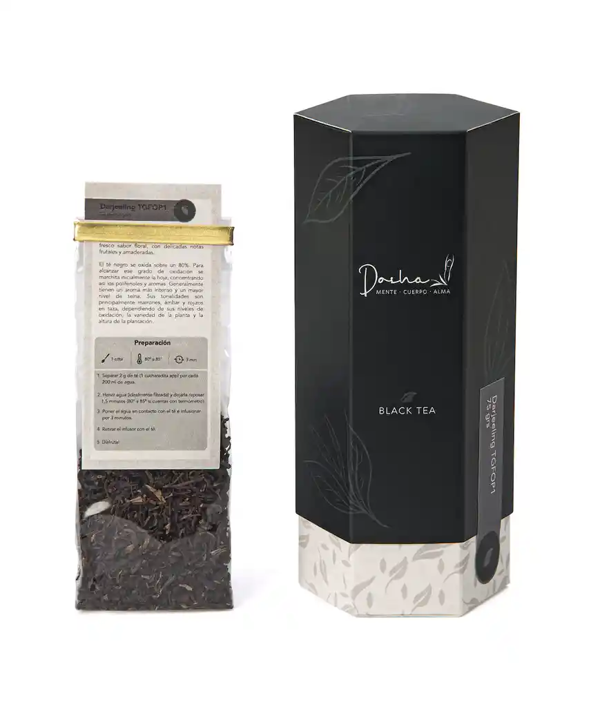 Té Negro Darjeeling Premium de Origen Indio Embárcate en un viaje hacia la elegancia y el refinamiento con nuestro Darjeeling, un té negro de la pintoresca región montañosa de Darjeeling, India. Este té exquisito y fresco cautiva los sentidos con su sabor floral, delicadas notas frutales y toques amaderados. Descubre la perfección en cada sorbo con este tesoro de la naturaleza. Beneficios para la Salud: ✓ Combate el Envejecimiento y Problemas Cardiovasculares: Sus antioxidantes ayudan a combatir el envejecimiento y los problemas cardiovasculares, brindando protección para el corazón y el sistema circulatorio. ✓ Hidratación y Eliminación del Exceso de Agua: Actúa como un diurético suave, ayudando a la hidratación y eliminación del exceso de agua en el cuerpo, promoviendo un equilibrio hídrico saludable. ✓ Estimulación del Sistema Nervioso Central: Gracias a su contenido de cafeína, Darjeeling estimula el sistema nervioso central, proporcionando una sensación de alerta y energía. ✓ Sensación de Saciedad: Sus propiedades astringentes y refinadas proporcionan una sensación de saciedad, ayudando a controlar el apetito y mantener una dieta equilibrada. Maridaje: El té Darjeeling, conocido como el champán de los tés”, se marida bien con alimentos como ensaladas de espinaca, frutillas, nueces, salmón, quinoa con vegetales asados, garbanzos y palta. Frutas frescas, postres como tarta de manzana, yogur griego con miel también complementan sus notas florales y frutales. Momento de consumo: el té Darjeeling es ideal para disfrutarlo durante la tarde, especialmente para una pausa para el té o como acompañamiento de una snack ligero. Sus notas delicadas y frutales lo hacen perfecto para momentos de relajación, reflexión, o socialización. También puede ser una excelente opción para un brunch tardío o una reunión informal, donde su perfil elegante y suave complementará una variedad de alimentos ligeros y saludables.