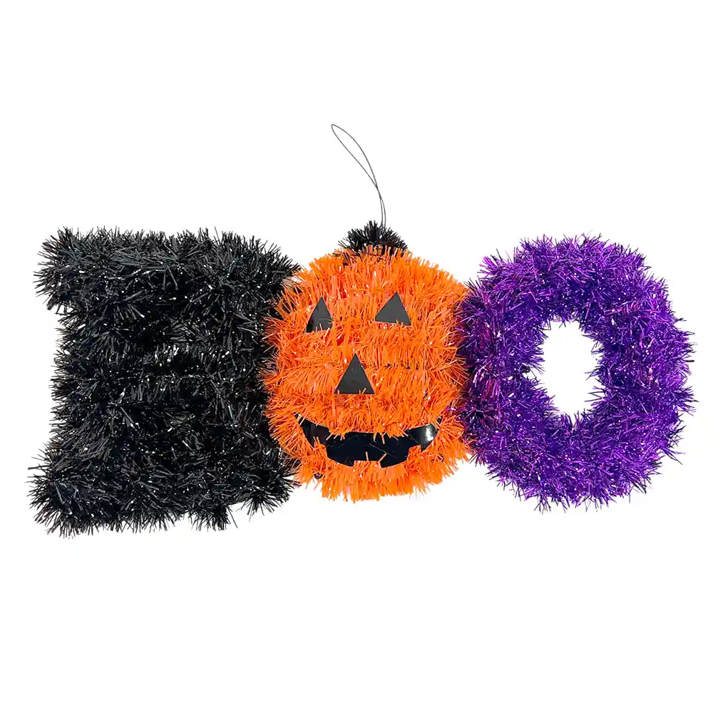 ¡Agrega un toque divertido y brillante a tu decoración de Halloween con este tinsel con la palabra €œBoo€! Perfecto para colgar en paredes, ventanas, mesas o cualquier espacio que quieras llenar de espÃritu Halloweenesco. Diseño llamativo y temáticoCon la palabra €œBoo€ en colores vibrantes y acabado brillante, este tinsel aporta alegrÃa y un toque espeluznante a tus celebraciones, ideal para fiestas y decoración temática. Ligero y resistenteFabricado con material de buena calidad, ligero y fácil de colgar, manteniendo su forma y brillo durante toda la celebración. Beneficios Diseño temático con la palabra €œBoo€ Ideal para decorar fiestas y espacios de Halloween Material resistente y seguro Fácil de colocar y reutilizable Detalles técnicos Cantidad: 1 unidadMaterial: Tinsel/plásticoMedida: Estándar Haz que tu decoración de Halloween sea divertida y brillante! PÃdelo ahora y recÃbelo en la puerta de tu casa. •¸ï¸