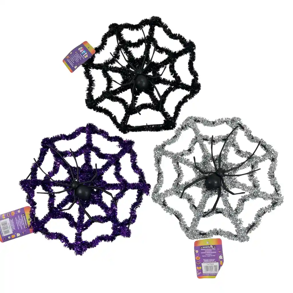 ¡Decora tu fiesta de Halloween con este tinsel con diseño de telaraña! Perfecto para colgar en paredes, ventanas, mesas o cualquier espacio que quieras llenar de espÃritu Halloweenesco y diversión temática. Diseño llamativo y espeluznanteCon telarañas en colores surtidos, este tinsel aporta un toque divertido y aterrador, ideal para fiestas, disfraces y decoración temática. Ligero y resistenteFabricado con material de buena calidad, ligero y fácil de colgar, manteniendo su forma y color durante toda la celebración. Beneficios Diseño temático de telaraña Colores surtidos para mayor diversión Material resistente y seguro Perfecto para decorar fiestas y espacios de Halloween Detalles técnicos Cantidad: 1 unidadMaterial: Tinsel/plásticoColores: SurtidosMedida: Estándar Haz que tu decoración de Halloween sea divertida y espeluznante! PÃdelo ahora y recÃbelo en la puerta de tu casa. •¸ï¸•·ï¸